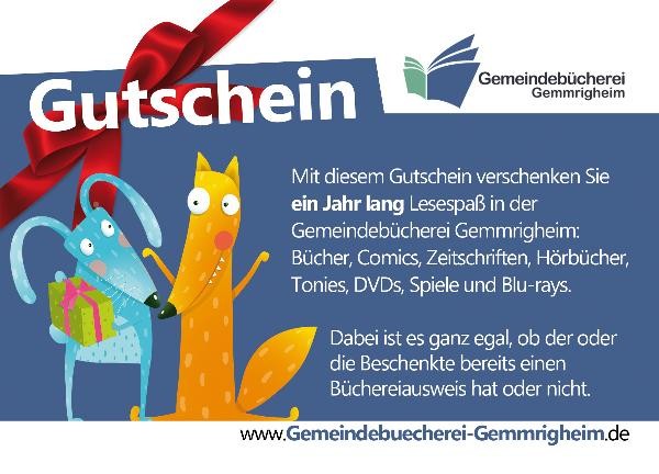Für 15 Euro kann der oder die Beschenkte ein Jahr lang nach Herzenslust in der Gemeindebücherei Bücher, Comics, Zeitschriften, Hörbücher, Tonies, DVDs, Spiele und Blu-rays ausleihen. Der Gutschein berechtigt auch zur Nutzung der Onleihe.